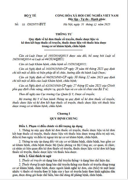 quantri Cập nhật thông tin mới nhất về quy định kê đơn thuốc cổ truyền, thuốc dược liệu và kê đơn kết hợp thuốc cổ truyền, thuốc dược liệu với thuốc hóa dược trong cơ sở khám bệnh, chữa bệnh. Thông tư được ban hành ngày ngày 31 tháng 12 năm 2025. Kính mời quý bệnh nhân, khách hàng và quý đồng nghiệp quan tâm tham khảo và thực hiện.