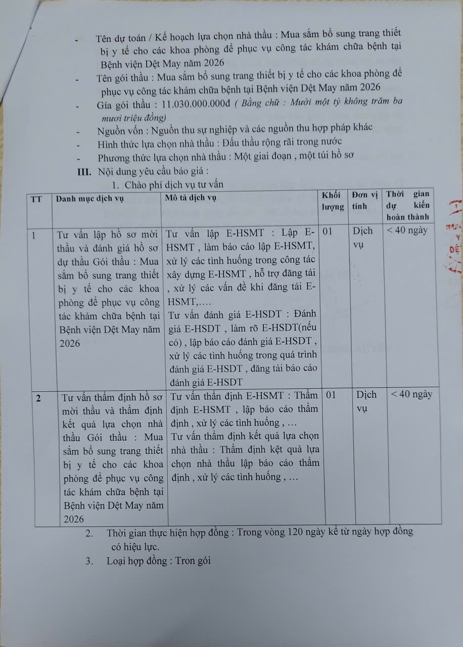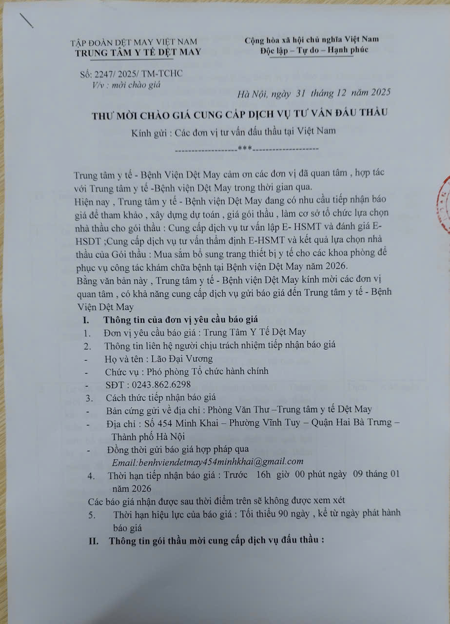 Thư mời chào giá cung cấp dịch vụ tư vấn đấu thầu