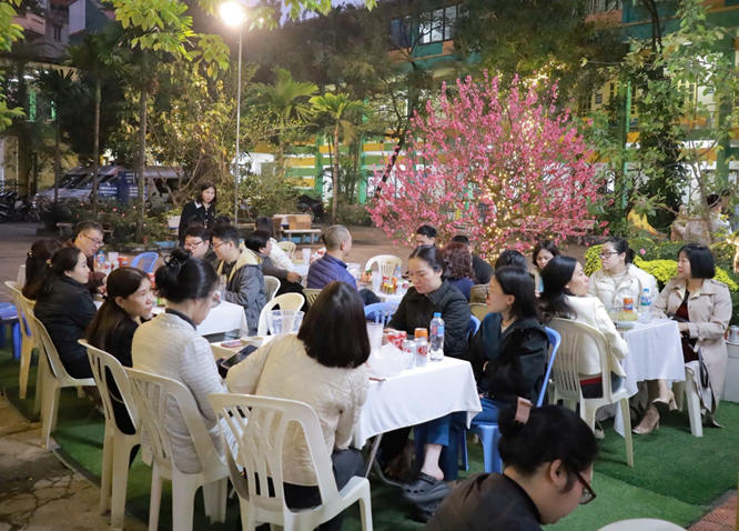 Không khí bữa tiệc vô cùng sôi động với những tiết mục văn nghệ do các nhân, tập thể các khoa, phòng ban đóng góp và hoạt động bốc thăm trúng thưởng.