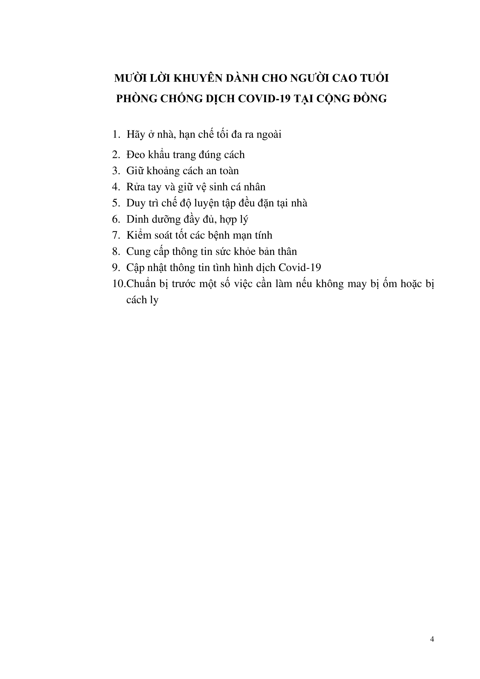 HƯỚNG DẪN TẠM THỜI CHĂM SÓC SỨC KHỎE PHÒNG CHỐNG DỊCH BỆNH COVID-19 CHO NGƯỜI CAO TUỔI TẠI CỘNG ĐỒNG (Ban hành kèm theo Quyết định số 1588/QĐ-BYT ngày 07 tháng 4 năm 2020 của Bộ trưởng Bộ Y tế)